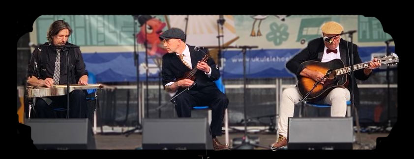 The Ukulele Uff Trio is comprised of Chris 'Ukulele' Uff on ukulele, Pete Price on guitar and 'Brother' Bill Leach on Hawaiian guitar. They specialise in obscure and wonderful 1920s/30s jazz, Tin Pan Alley songs and traditional Hawaiian music, performed with a skill and authenticity that is rare today.